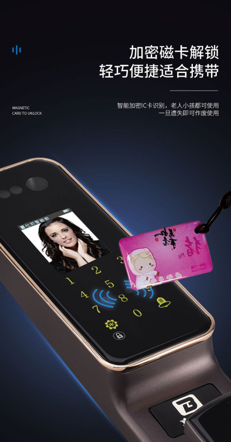 嘉仕邦人脸识别智能锁拥有指纹、人脸、密码、感应卡、远程开锁等多种开锁方式,彻底治好忘带钥匙的毛病。