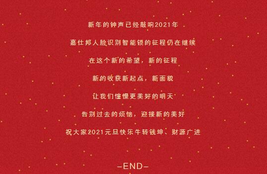 岁末将至,敬颂冬绥 丨嘉仕邦人脸识别智能锁祝您2021万事胜意
