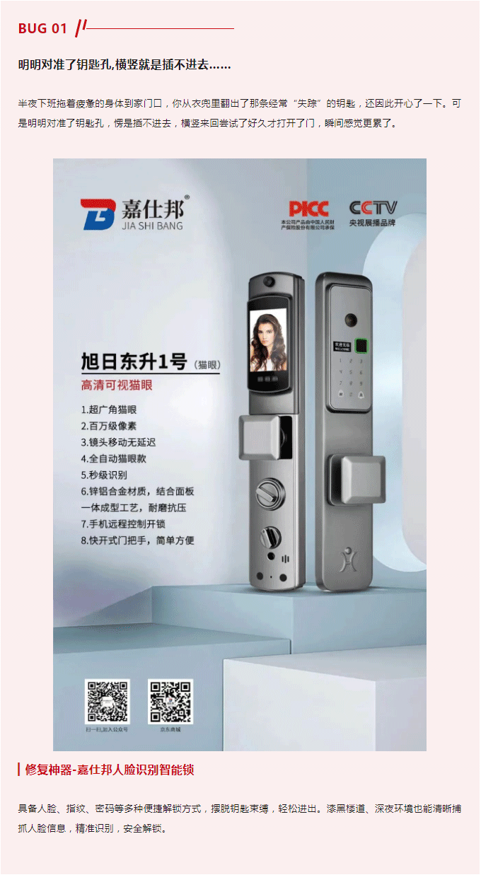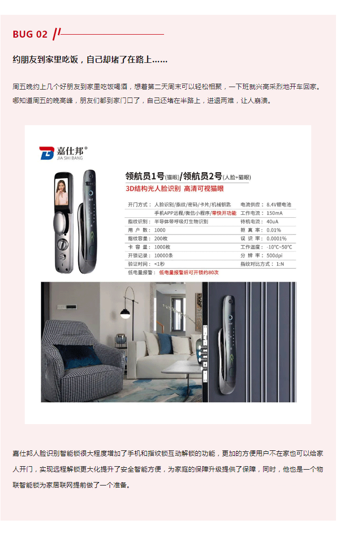 嘉仕邦人脸识别智能锁丨告别生活BUG,让生活简单美好一点