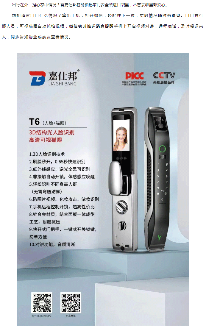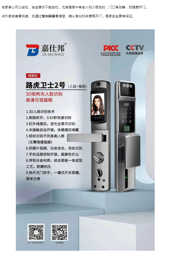 嘉仕邦智能锁 | 时刻守护家门和家人安全