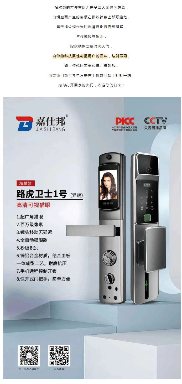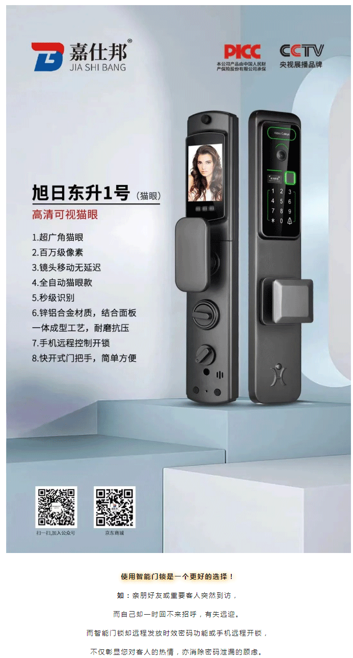 嘉仕邦人脸识别智能锁丨看家,一把智能锁就够了!