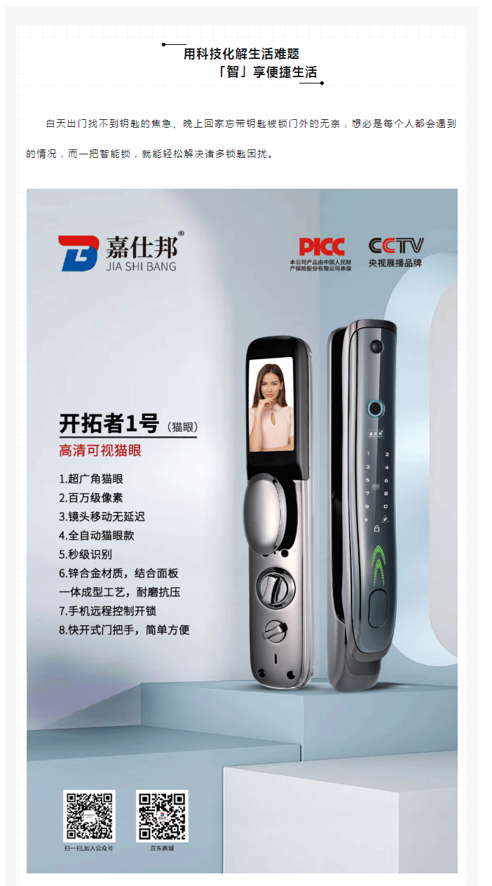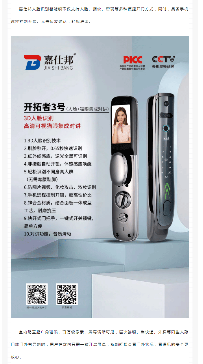 嘉仕邦人脸识别智能锁丨回家的舒适,从解锁进门一刻开始!