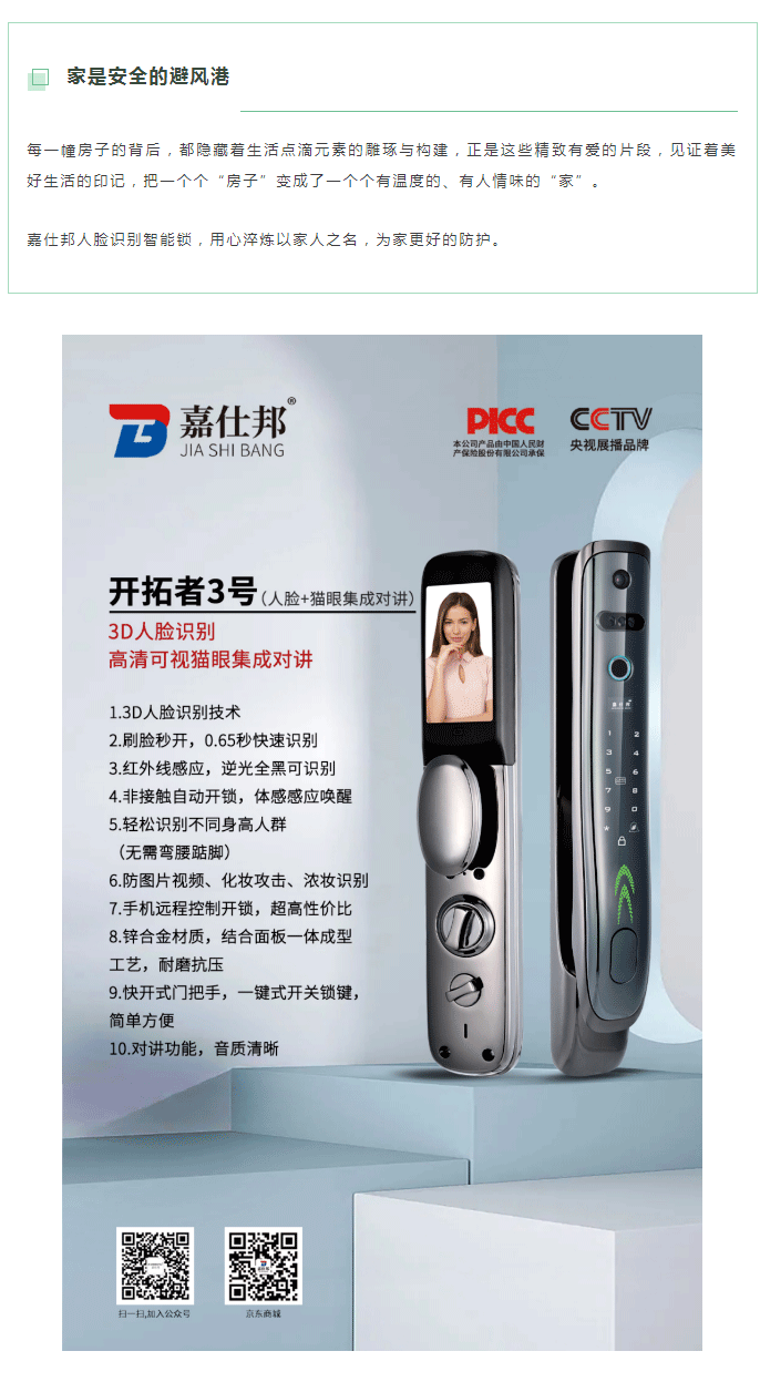 嘉仕邦人脸识别智能锁丨回家的舒适,从解锁进门一刻开始!