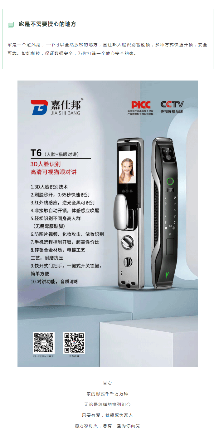嘉仕邦人脸识别智能锁丨爱家人,幸福从智能锁开始!