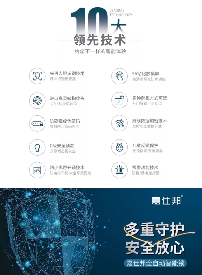 为了让更多的家庭用上安心、安全、稳定的人脸智能锁,嘉仕邦将潜心深耕研发生产,为消费者带来更便捷、安全的生活。在未来的营销规划上,嘉仕邦将不断提升技术,为消费者和经销商伙伴们提供更多的优质产品和服务和平台。